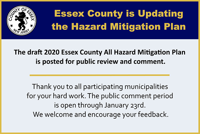 Posted January 02, 2020The draft 2020 Essex County All Hazard Mitigation Plan is posted for public review and comment. Please comment. https://www.essexsheriff.com/essex-2020/.