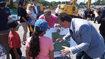 His eyes lit up as Mayor Michael Melham explained to him that these monstrous machines will soon help create an expansive turf field out of all the dirt and rock surrounding him.