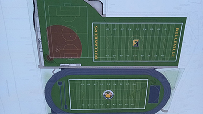 Photo Credit Belleville Township: A rendering showing how the new facilities will look, along with the football field - which will soon be covered with new turf.