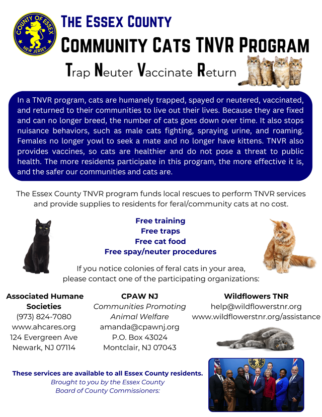 Essex County is proud to support humane, effective, and free services to help manage feral and community cat populations through the Community Cats TNVR Program.
