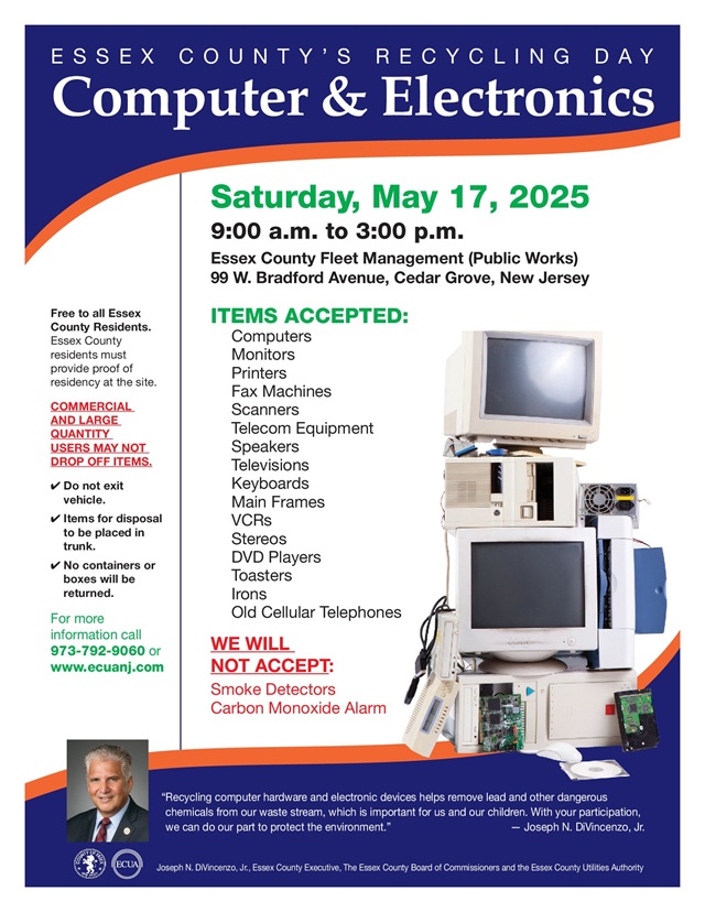 Clear out your clutter and help protect the environment! Join us for Essex County’s Computer & Electronics Recycling Day, where you can responsibly dispose of your unwanted devices.