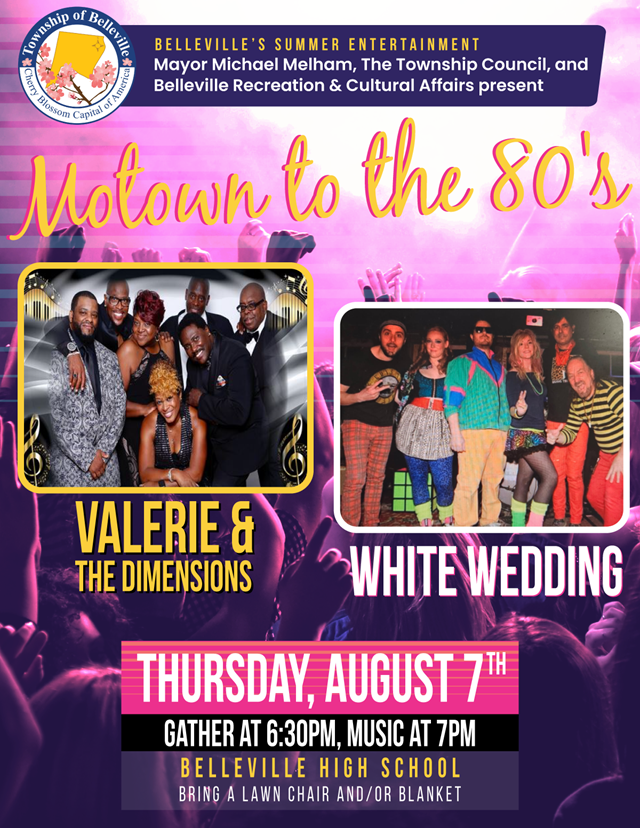 Posted August 04, 2025This week, Belleville's Summer Concert Series is back with Valerie & The Dimensions followed by White Wedding! It's a full night of Motown Grooves through 80's bangers, yes, we're hittin' all the decades!