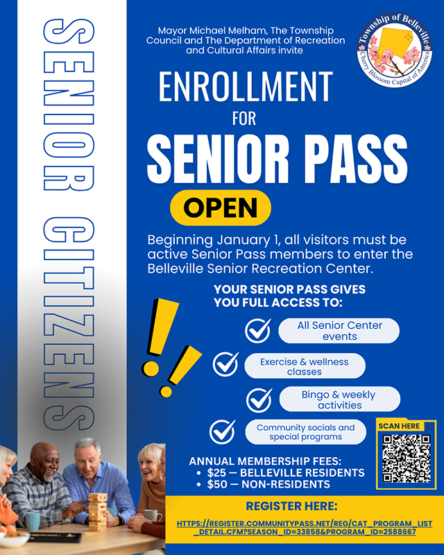 Beginning January 1, all visitors must be active Senior Pass members to enter the Belleville Senior Center.