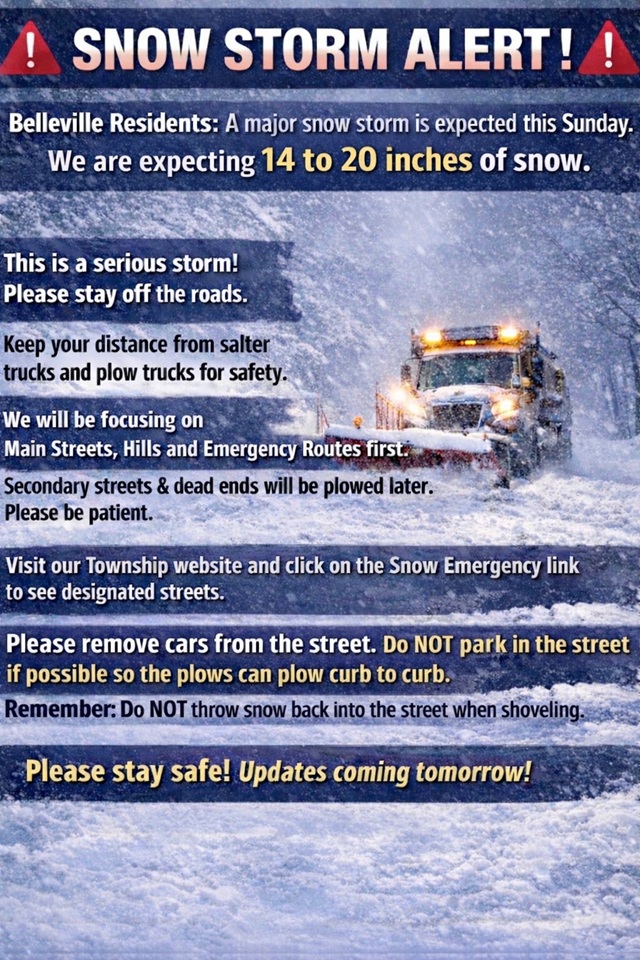 Alert: Belleville is expecting 14 to 18 inches of snow or more on Sunday and ending Monday