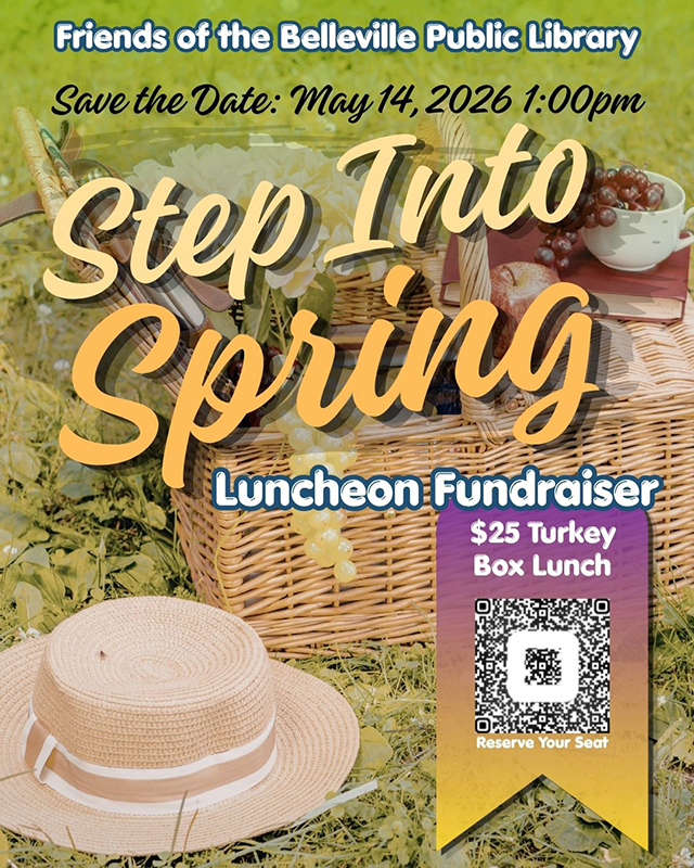 Posted March 31, 2026The Friends of the Belleville Public Library will be holding a Fundraising Luncheon to help support the library on Thursday May 14, 2026 at 1:00pm. Donate and enjoy a box lunch. https://bellepl.org/step-into-spring-library-fundraising-luncheon/.